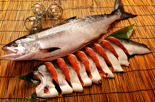たくさん獲れる秋鮭の中でも、肌の色が銀色に輝く、脂のりの良い銀毛と呼ばれる厳選された2.5キロ前後の鮭を使用した新巻鮭です。銀毛新巻鮭一本を切身加工し、1切れごとにミシン目を入れた真空包装になっておりますので、切り離して使用することができます。そのまま焼き魚にしても美味しく召し上がれますが、おすすめの調理法としては石狩鍋や粕汁、三平汁などの汁物です。新巻鮭の塩分と旨味がほどよく溶けだした汁と鮭の相性は抜群です。また、ホイル焼きやパスタなどにもおすすめで、新巻鮭から染み出た塩分が野菜やパスタに行き渡り美味しく食べることができます。