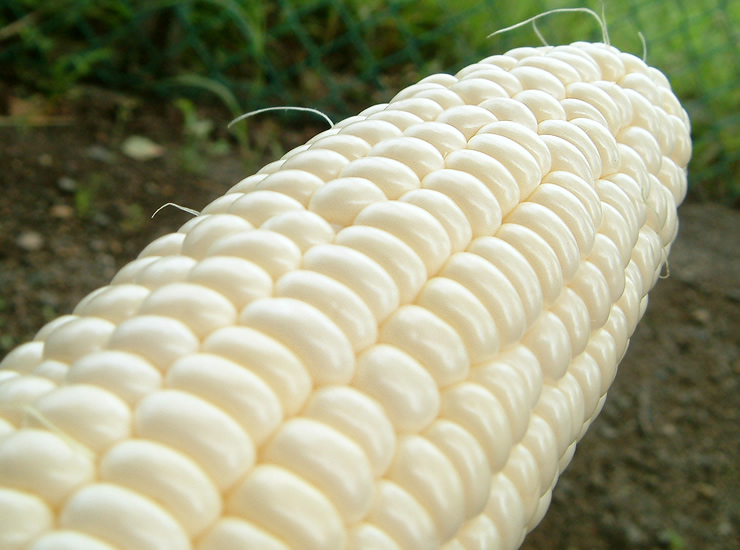 また身の詰まり具合は、トウモロコシの先端の実の入り具合を中指、薬指、小指の3本で握り、1本1本確認。 太く大きく身がギュッと詰まった、とにかく甘く甘く甘いピュアホワイトをお届けしています。